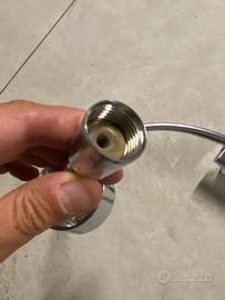 Vendo due set soffione doccia con flessibile ed asta come da foto, in ottime condizioni. Regolabili in altezza, portasapone, attacco filettato. Prezzo 4 euro al pezzo.