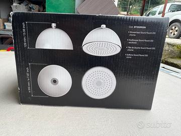 Soffione Doccia Sound Round 200 MM dotato di speaker, microfono, led funzioni, nicchie per chiave montaggio/ smontaggio. Tramite connessione bluetooth consente di ascoltare la musica/ fare telefonate. Attacco standard 1/2"