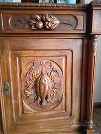 Vendo soggiorno antico composto da mobile coma da foto tavolo allungabile con sedie ed eventualmente disponibili anche lampade antiche