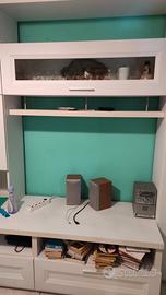vendo soggiorno parete metri 3 bianco con grande vetrina e vetrinetta sopra porta TV tenuto molto bene