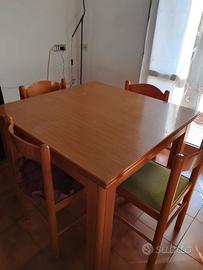Soggiorno con tavolo apribile a libro, quattro sedie, vetrinetta, libreria, angolare con porta tv.