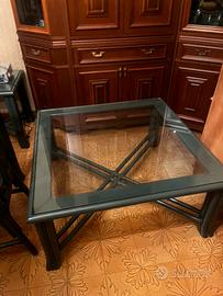 Per cambio casa vendesi libreria in legno verde piu 3 tavoli uno grande pranzo quadrato e due piu piccoli per divani e lume e 4 sedie foderate bene eleganti