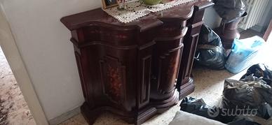 Vendo soggiorno: Armadio, tavolo, sedie, divano con 2 poltrone, tavolino basso, copri termosifone in legno. + Camera da letto: Letto, armadio, comodini, settimino con specchio. Ingresso: Mobile basso da ingresso con specchio Cameretta: Cameretta a ponte con letto + divano letto Tutto € 1000 Ritiro a carico dell' acquirente