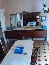 Vendo camera da pranzo vintage (fine anni 60) composta da tavolo in marmo per 6 posti, trumeau con ante a vetro e ripiani e mobile specchiera a 6 ante