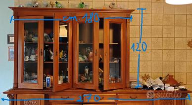 - un secondo mobile sovrastante di cm. 180 x cm. 120 altezza x cm. 60 profondità con cassetti, ante e vetrinetta;