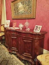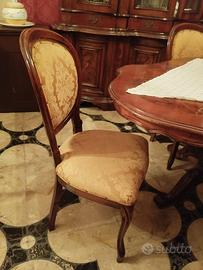 Sala da pranzo con tavolo ,sedie , sparecchiatavolo e credenza in legno massiccio
