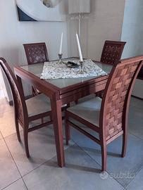 Vendo tavolo 90x90 allumgabile a 180 in vetro temperato acidato +4 sedie fobdino in pelle bianca facilmente cambiabile tutto in ciliegio massello si completatno anche con una libreria da richiedere a parte