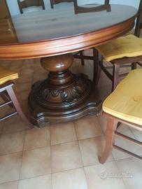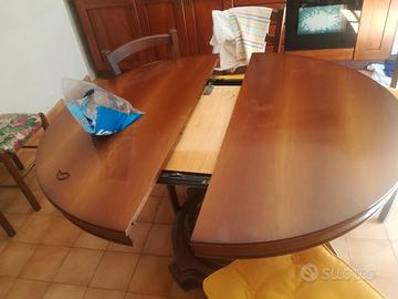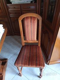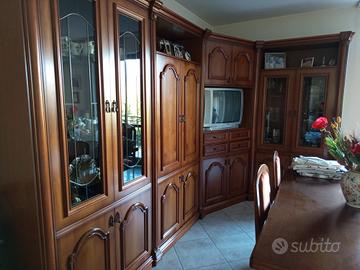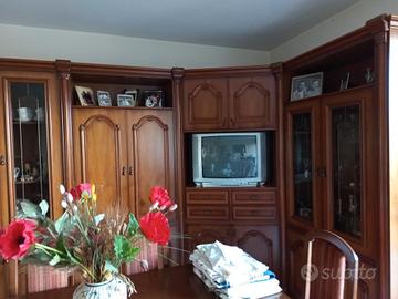 Soggiorno classico usato di noce massello ma in ottimo stato e ben conservato che comprende tavolo,6 sedie tappezzate nuove,mobile di lunghezza 3,60mt.
