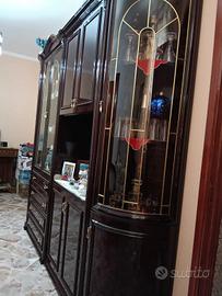Vendo elegante soggiorno classico anni ’80/’90 in legno con finitura lucida color ciliegio, in ottime condizioni.