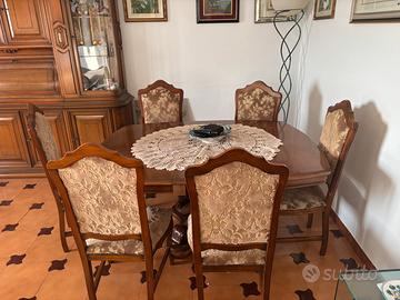 Soggiorno classico in legno – completo di parete attrezzata, tavolo e 6 sedie