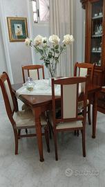 Parete attrezzata 2mt 80cm, con ampio spazio TV e vetrinette per esposizione, tavolo allungabile fino a 2 metri, con 6 sedie con seduta imbottita