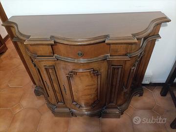 Soggiorno composto da: Mobile vetrina Mobiletto Mobiletto ad angolo 4 sedie molto solide Tavolo diametro 125
