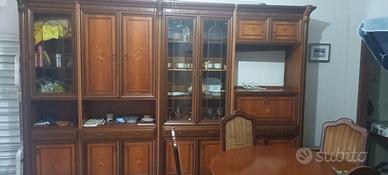 Soggiorno come foto, con vetrine, cassetti, e spazio tv, + tavolo allargabile.Buone condizioni, vendo per inutilizzo. Smontaggio e Ritiro a Scoglitti a carico dell'acquirente. Prezzo trattabile