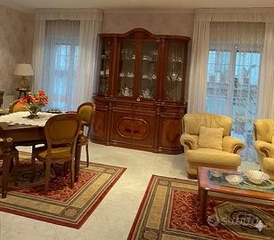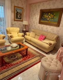 Soggiorno completo di credenza/vetrina/tavolo legno massello con sedie Divano con 2 poltrone e pouff ( non compreso Tavolinetto basso)