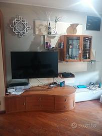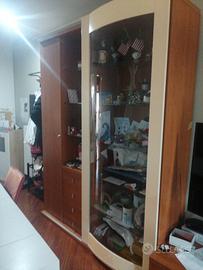 Soggiorno completo come da foto. Visionabile a casa in quanto ancora montato. Grande e scenografica porta scorrevole in vetro, mensole in vetro. Piccole maniglie leggermente usurate di facile sostituzione. Smontaggio e trasporto a carico dell'acquirente. Il soggiorno si trova al primo piano di una villetta a schiera quindi bisogna considerare una sola rampa di scale e accesso immediato alla strada. Il soggiorno è composto dai mobili che vedete in foto più il mobile porta tv, la vetrinetta e i pannelli beige che vedete dietro la vetrinetta, componibili a vostro piacimento. 5 pannelli in totale sui quali tramite appositi supporti si possono posizionare mensole di vetro
