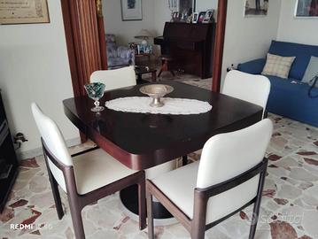 oggiorno completo anni 70 composto da Tavolo e 4 sedie rivestite in pelle oltre che da libreria coordinata. Vendibile anche separatamente libreria e tavolo con sedie