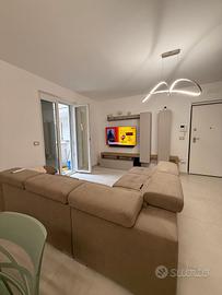 Vendo per trasferimento all’estero soggiorno completo in stile moderno, perfettamente abbinato alla cucina, con finiture eleganti e colori neutri facilmente adattabili a qualsiasi ambiente. Tutti i mobili hanno solo 6 mesi di vita, sono pari al nuovo e ancora in garanzia. La composizione comprende: •Divano angolare ampio e confortevole, trasformabile in letto con sistema estraibile a scomparsa •Parete attrezzata moderna con pensili e base TV •TV Samsung 55 pollici •Madia capiente coordinata •Lampadario di design moderno •Condizionatore (split a parete) Ambiente luminoso, moderno e già completo di tutto, ideale per chi vuole una soluzione pronta senza dover acquistare singoli elementi.