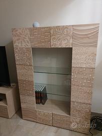 - Vetrina 2 ante L.121 H.166 P.42 con mensole in vetro spessore 8mm, ante battenti vetro temperato spessore 3mm, 4 vani contenitori