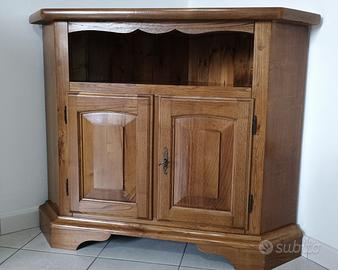 Vendo mobili soggiorno in castagno chiaro composto da mobile lunghezza 218cm prof. 45 cm altezza 210cm, mobile ad angolo le misure sono sulla foto, tavolo 200x80 cm allungabile di 40 cm per parte per un totale di 280 cm alt. 80 cm, completano sei sedie impagliate. Tutto in buone condizioni.