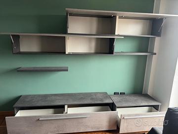 vendo per ristrutturazione, mobile soggiorno completo come da foto. il soggiorno ha una lunghezza di 2,70m Prezzi: mobile soggiorno: 400 euro lampadario: 40 euro Smontaggio e Trasporto a carico dell'acquirente