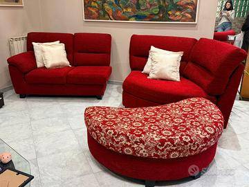 Soggiorno completo composto da: Divano comodo modulare Parete attrezzata completa di vetrine Tavolino elegante in vetro Ulteriore mobile multiuso PREZZO TRATTABILE