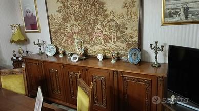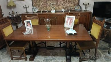 Stupendo soggiorno composto da tavolo, credenza con vetrina, credenza piana e 4 sedie. Smontaggio e ritiro a carico di chi lo prende.