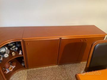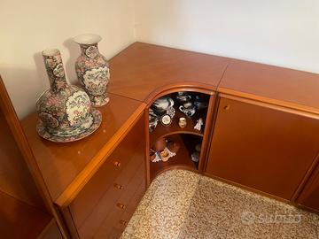 Vendo soggiorno ad angolo componibile completo di vetrinetta cassettiera con tavolo allungabile e 6 seggiole in legno e pelle