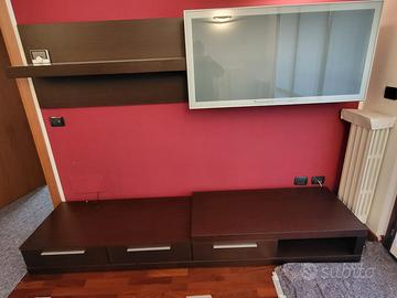 Vendo soggiorno modeno porta tv con vetrinetta, vari cassetti e una mensola con luce.