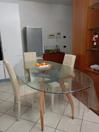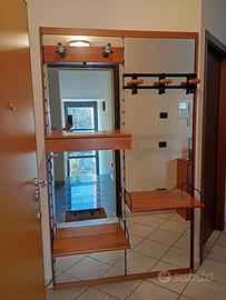 Soggiorno in ciliegio con vetrina illuminata,tavolo con piedi particolari lunghezza 2 metri ingresso con appendiabiti cassetto e mensole Tutto in ciliegio