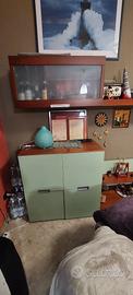 Soggiorno in ottime.condizioni con vetrine e cassetti inclusa vetrina bottiglie Divano 3 persone che si trasforma in letto per 2 persone con materasso Futon ( giapponese) mt.2,40 Prezzo trattabile Ritiro e smontaggio a carico dell'acquirente