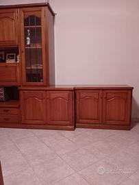 Vendo mobile credenza per soggiorno di colore noce chiaro in perfette condizioni, con 2 ante vetrate, 2 cassetti grandi, e altri scomparti xon all interno ripiani.