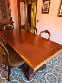 Vendo soggiorno composto da credenza, tavolo e sei sedie tutto in ottimo legno e in buonissime condizioni. Le sedie presentano qualche segno di usura.