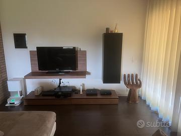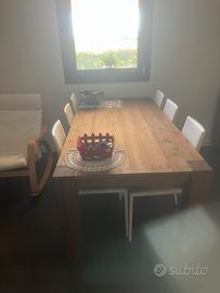 Vendo divano con puff, camera da pranzo e parete tv. L offerta comprende tavolo in legno allungabile da 180 x91 cm da chiuso con sedie in cuoio. Mobile in legno abbinato al tavolo 180 x 48 cm. Divano ( poltrone e sofa ) ad elle con puff in microfibra da 280 per 193 cm. Parete tv in legno formata da 3 pezzi - porta tv da 150 x 52 di profondità - mobile sospeso da 128 x 45 di profondità - cassettone 240 x 53 di profondità. Tutto il mobilio proviene da mobilificio. Pezzi in legno pregiato e in ottime condizioni . Il divano ha 3 anni di vita usato pochissimo sfoderanile in ogni sua parte. La parete tv ha circa 7 anni e il tavolo e il movbile abbinato 5anni. Il prezzo comprende tutto in stock . Da vedere dal vivo !