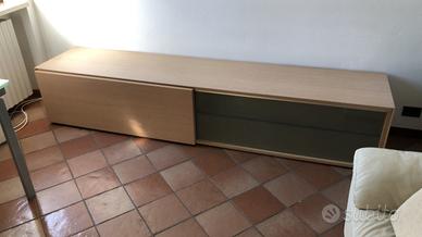 - mobile porta tv con 2 ante scorrevoli e all’interno di ciascuna una mensola di vetro;