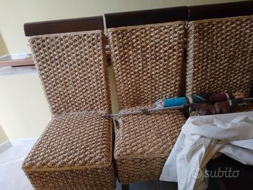 Vendo per errore di spazio, soggiorno etnico composto da n.6 sedie in giacinto d'acqua e tavolo allungabile in palissandro. SOLO SE INTERESSATI.