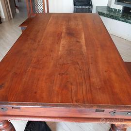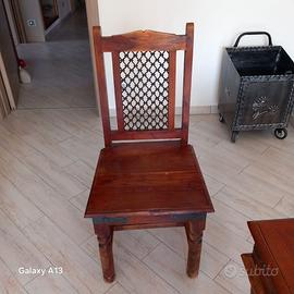 Soggiorno etnico indiano composto da 1 tavolo in legno massiccio per 6 persone, con inserti in metallo, gambe smontabili e 2 prolunghe per trasformarlo in 10 posti 4 sedie in legno massiccio con inserti in metallo e schienale con rete metallica. Il tutto ben tenuto e non danneggiato, si trova a Ferrara. Se interessati lascio il mio contatto 3454874939