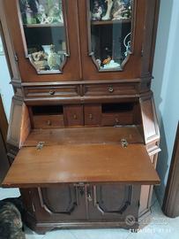 Vendo mobili da soggiorno in arte povera. Vetrina ad angolo,vetrina con ribalta in buono stato. Tavolo quadrato larghezza un metro estensibile a libro lunghezza due metri,in legno massiccio con qualche riga sopra, all' interno come nuovo. Porta TV,con delle imperfezioni come da foto. Quattro sedie da ristrutturare.