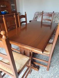 Soggiorno in castagno,completo di credenza misure H 2,25xL 2,06xP 53,tavolo rettangolare allungabile misure chiuso L 1,60,aperto L 2,10,con sei sedie impagliate,praticamente nuovo,vendo causa trasferimento