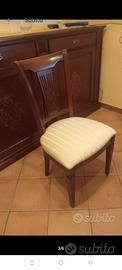 Vendo soggiorno in ciliegio tenuto benissimo, con tavolo apribile allugambile set. di 5 sedie in ciliegio imbottite raso e mobiletto