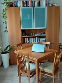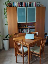 Vendo Soggiorno in noce chiaro, con Tavolo e 4 sedie Mobile soggiorno 205 cm x 41 cm x h 223 Tavolo 90 cm x 90 cm allungabile a 180 cm smontabile per il trasporto