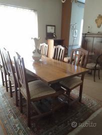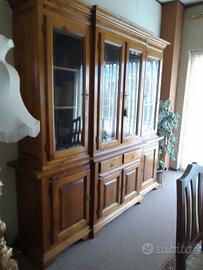 Soggiorno completo di cristalliera, tavolo rettangolare ,sei sedie ;il tutto in noce massello. Vendo per cessata attività, anche separatamente