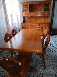 soggiorno provvisto di credenza , tavolo e 6 sedie in pino NO PERDITEMPO