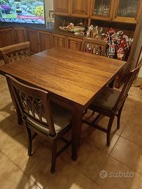 Soggiorno in vero legno di noce, incluso di tavolo allungabile e 4 sedie