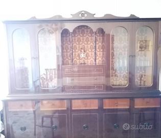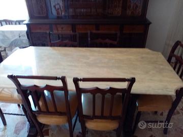 vendesi soggiorno completo di tavolo e sedie,inizio anni '70,in legno con ripiani in marmo