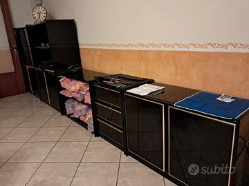 Trasforma il tuo soggiorno in uno spazio raffinato e senza tempo con questa straordinaria composizione di mobili artigianali laccati neri. Ogni elemento è curato nei minimi dettagli, un perfetto equilibrio tra funzionalità e stile.