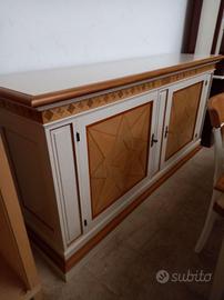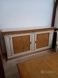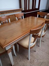 affascinante soggiorno bicolore Le Fablier composto da credenza 2 ante + tavolo rettangolare allungabile + 6 sedie utilizzato per expo.