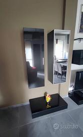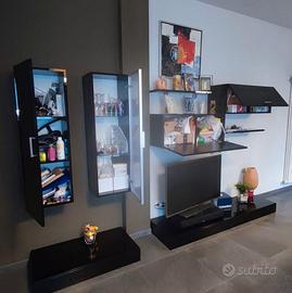 Vendo soggiorno per cambio arredamento. *PREZZO TRATTABILE* MISURE: 3 mobili bassi: profondità 51 cm altezza 15,5 cm larghezza 98 cm. 2 pensili verticali: profondità 37cm altezza 120 cm larghezza 38,5 cm. 2 pensili orizzontali: profondità 37,5 cm altezza 38,6 cm larghezza 96,7 cm. 2 mensole: profondità 26 cm altezza 2,5 cm larghezza 96,7 cm