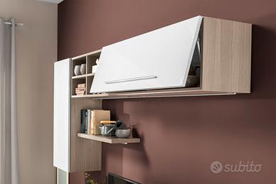 Soggiorno moderno completo "Giulia" effetto olmo perla, bianco laccato cm. 240 x 42 x 205 I moduli possono essere disposti anche al contrario della foto con la colonna a dx ruotandola. Montaggio facilissimo con barra tassellata. Prezzo leggermente trattabile.