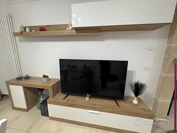 Soggiorno moderno bianco e legno con piccole ammaccature