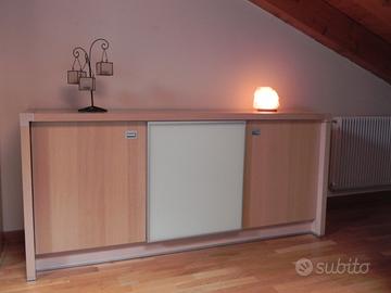 credenza con due ante a battente e una scorrevole p55cmx h82cm x l180cm;